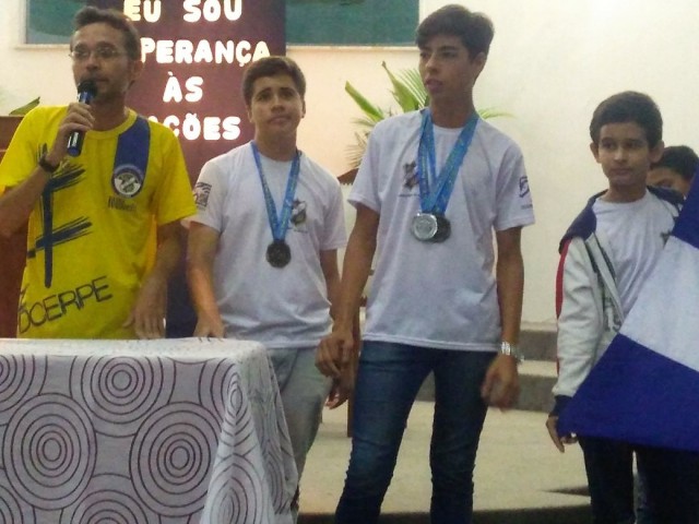 No início do mês de Abril de 2018, nossos Embaixadores do Rei, participaram de um torneio realizado nas dependência da Primeira Igreja Batista do Cordeiro em Recife. Naquele evento nossa turma foi medalhista nas competições de: - 1.500m (Felipe - Medalha de Prata); - 100m (Felipe - Medalha de Bronze); - Xadrez (Cristian Lucas - Medalha de Bronze). A família PIBEM parabeniza e se alegra com nossos Embaixadores!!